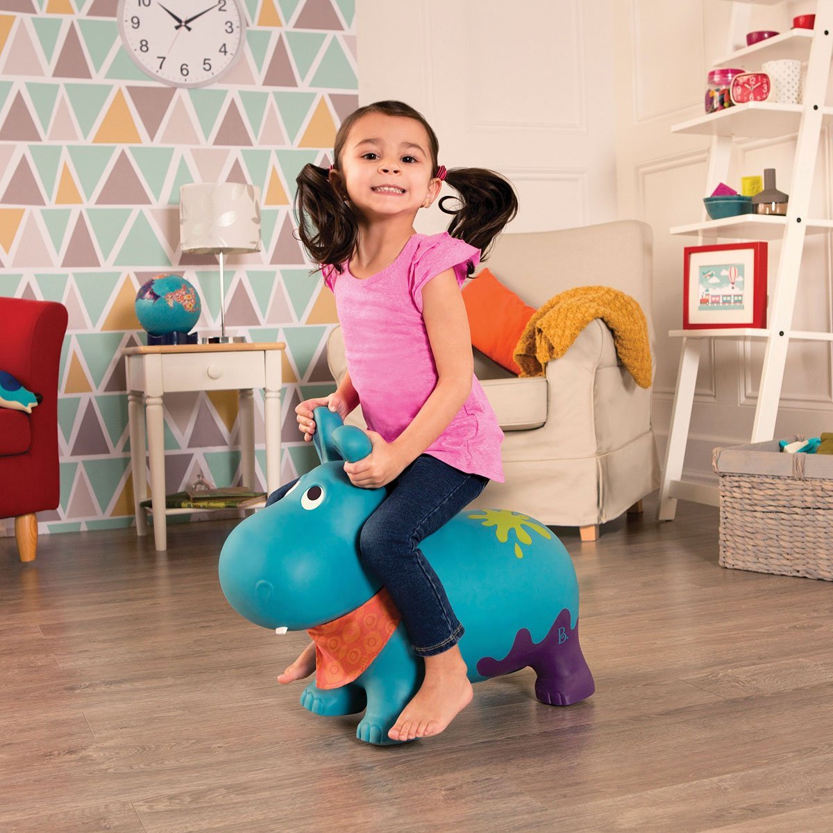 Skacz w miejscu lub po pokoju z wesołym skoczkiem Battat Jumper – hipopotam-TAM-TAMMomot Battat! Skoczek Battat – hipopotam-TAM-TAM pomoże Twojemu dziecku poprawić percepcję przestrzeni i rozwój fizyczny. Zabawki edukacyjne Battat – Bądź aktywny. Bądź pełen entuzjazmu. Bądź sobą! Wymiary hipopotama: 57 x 25 x 35 cm. Wymiary opakowania: 36 x 14 x 24 cm. Zalecane dla dzieci w wieku od 18 miesięcy do 5 lat.