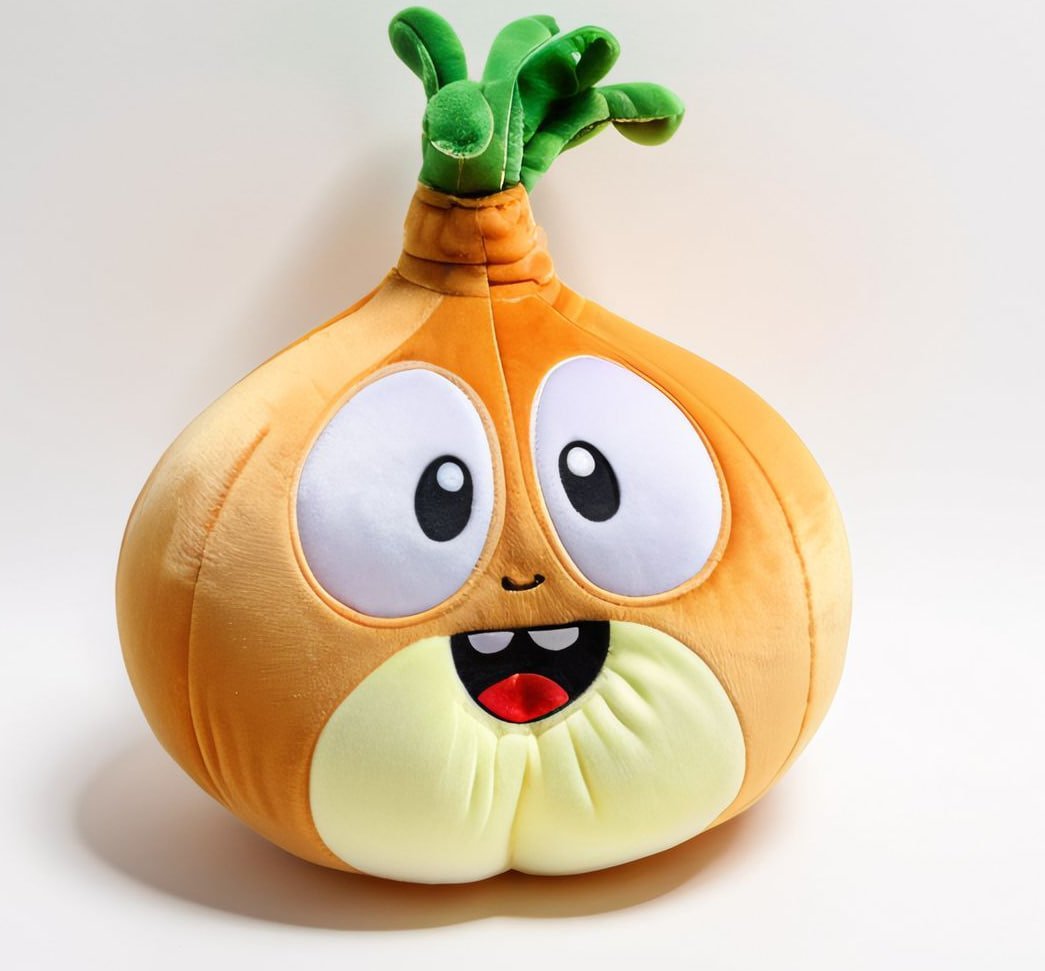 Pluszowa cebulka z zabawnym wyrazem twarzy to nietypowa maskotka, która przyciąga wzrok i bawi swoim wyglądem. Miękka, przyjemna w dotyku i całkowicie bezpieczna dla dzieci.