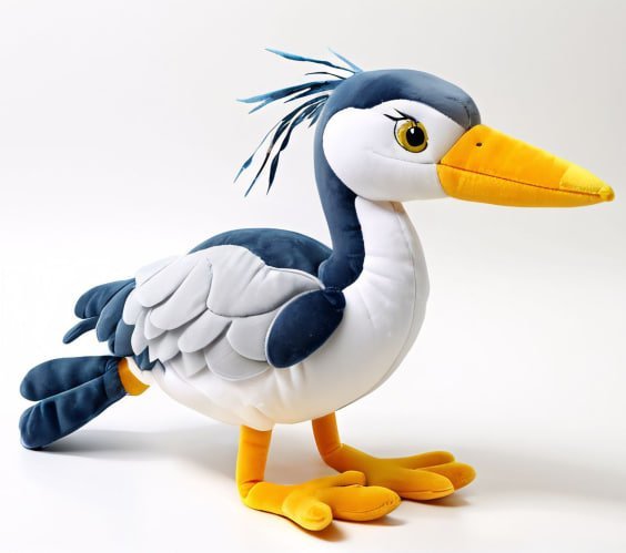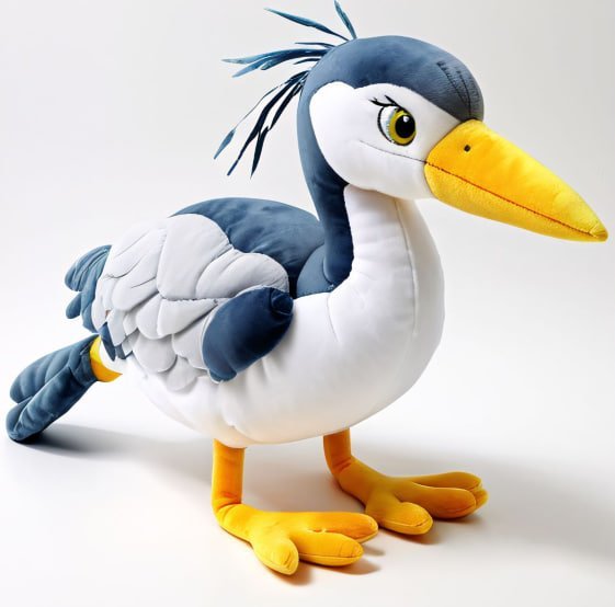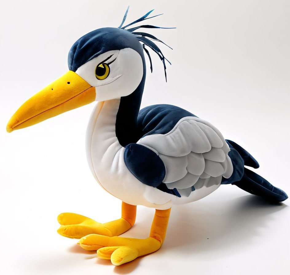 Elegancka pluszowa czapla o długich nogach i wyrazistym dziobie to maskotka, która zachwyca swoim realistycznym wyglądem. Jej piękne skrzydła i staranne wykonanie sprawiają, że jest wyjątkowa.