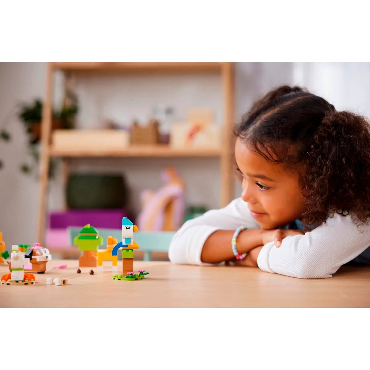 Zestaw z serii Classic pozwala dzieciom tworzyć urocze zwierzątka: psa, kota, chomika, królika i ptaka. Alternatywne kolory i kształty inspirują do eksperymentów, a 10 pomysłów w instrukcji pomoże rozwinąć wyobraźnię. Lego Classic to kreatywność, która łączy dzieci i rodziców.