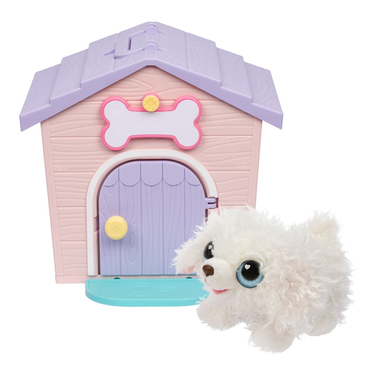 Miniaturowy domek, w którym czeka tajemniczy mały szczeniak! Złóż domek, udekoruj go i otwórz drzwi, aby dowiedzieć się, jaki szczeniak na Ciebie czeka. Przygotuj tabliczkę z imieniem, rozłóż dywanik i podaruj swojemu nowemu przyjacielowi zabawkową kość!