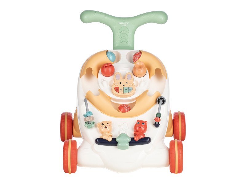 Chodzik FreeON Free2Play Lets Walk. Chodzik Free2Play Lets Walk: Kolorowe chodziki z regulowaną wysokością w 2 pozycjach, regulowanymi kołami o 2 różnych prędkościach. Wykonane z wytrzymałego plastiku. Z efektami świetlnymi i dźwiękowymi. Zasilane bateriami – 2xAA (brak w zestawie). Odpowiednie dla dzieci od 9 miesięcy. FreeON to europejska marka oferująca różnorodną gamę produktów dla dzieci, w tym sprzęt i tekstylia. Od ponad 10 lat nasze produkty każdego dnia poprawiają życie wielu rodzin, odpowiadając na nowoczesne trendy w wychowaniu dzieci i odzwierciedlając nasze podstawowe wartości: wysoką jakość, funkcjonalność, bezpieczeństwo i dbałość o design.