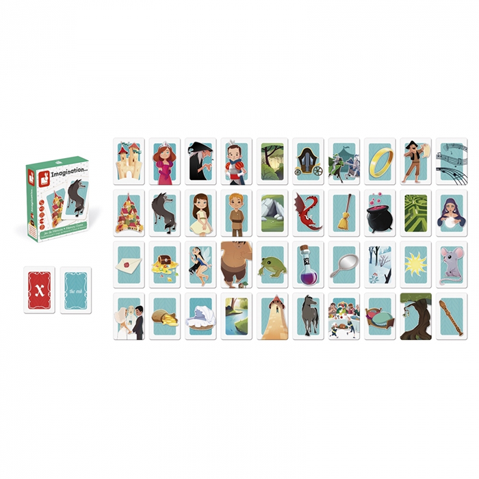 Gra planszowa „Memo” Janod Imagination J02753 dla kilku graczy, rozwijająca fantazję i wyobraźnię. Z tym zestawem francuskiego producenta Janod dzieci będą mogły za każdym razem wymyślać nowe historie, a celem gry jest ułożenie jak najdłuższej historii. Zestaw zawiera 50 kart (7 x 10,5 cm) wykonanych z grubej tektury oraz instrukcję z zasadami gry. Każda karta ma unikalny obrazek. Gra przeznaczona dla 2-5 graczy.