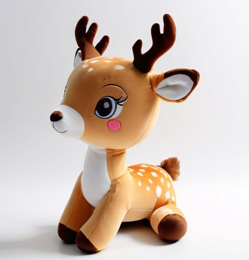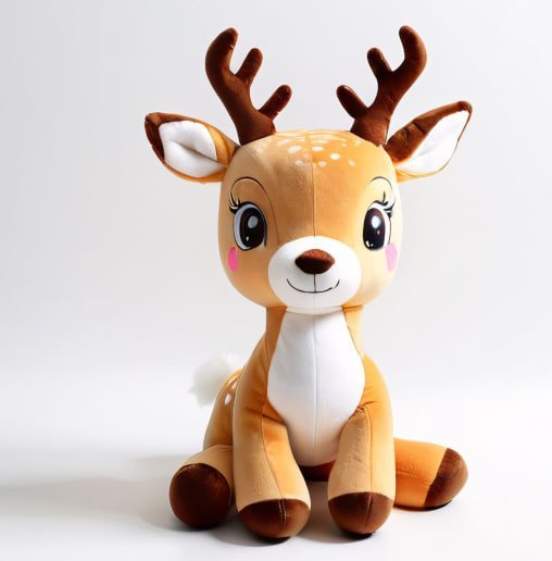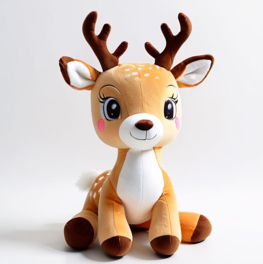 Uroczy pluszowy jelonek z miękkim futerkiem i delikatnymi rogami to prawdziwa ozdoba każdej dziecięcej kolekcji. Jego duże oczy i różowe policzki dodają mu uroku.
