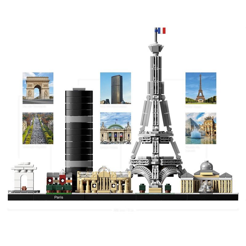 Stwórz wspaniałą paryską architekturę z zestawem Lego. Zestaw przedstawia legendarne zabytki, takie jak Łuk Triumfalny, Pola Elizejskie, wieżę Montparnasse, Grand Palais, wieżę Eiffla i Luwr, tworząc imponujący obraz.