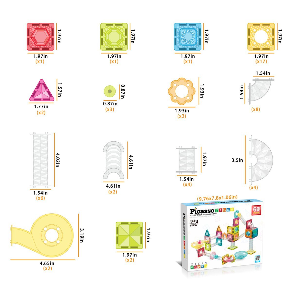 Magnetyczny konstruktor, 60 części, zestaw miniaturowych torów do kulek Picasso 28299