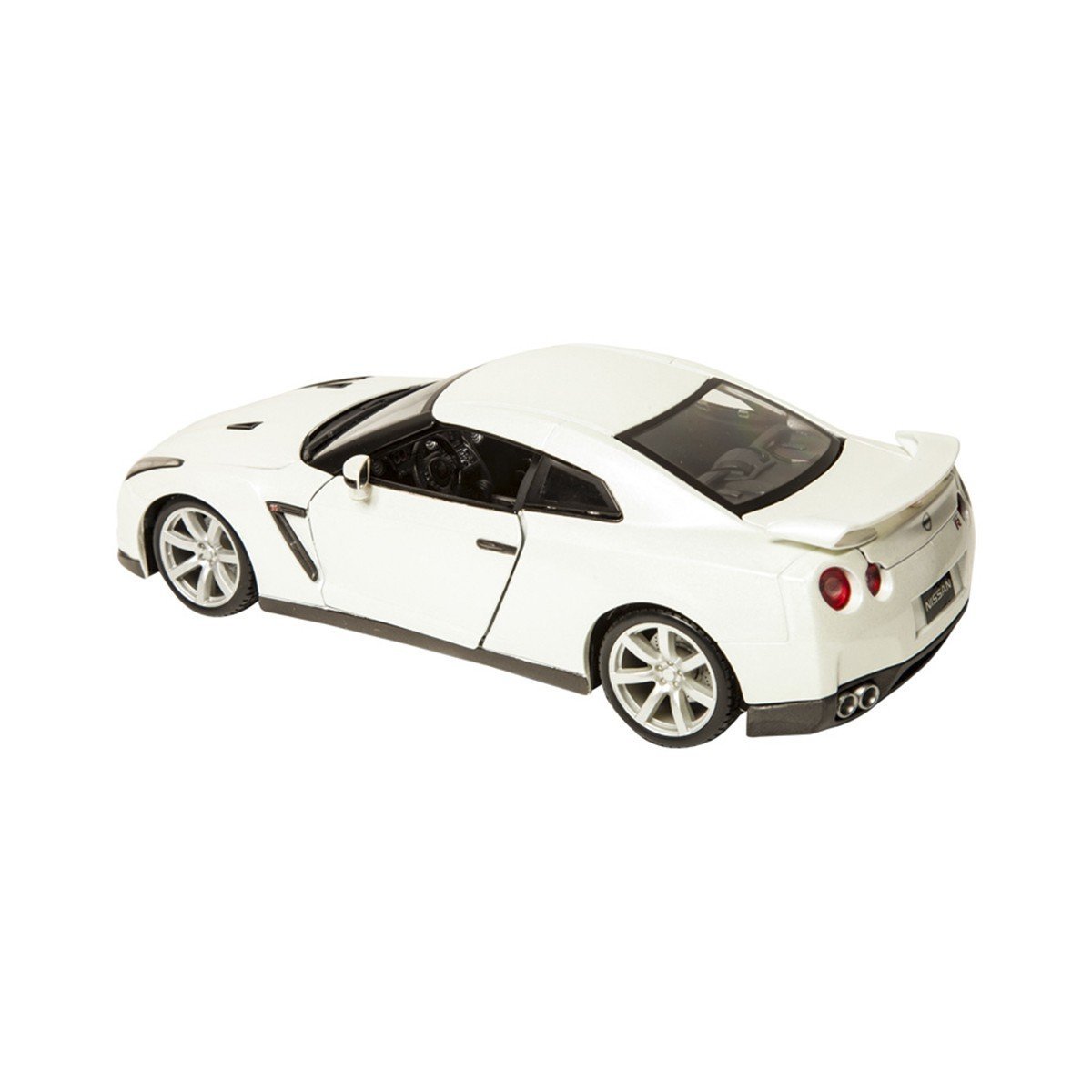 Model samochodu Bburago Nissan GT-R. Model ma metalową karoserię, otwierane drzwi i maskę, lusterka wsteczne, realistyczne reflektory, obrotową kierownicę, gumowe opony, wygląda jak prawdziwy samochód. Skalowany kolekcjonerski model samochodu Nissan charakteryzuje się wysokim poziomem szczegółowości, co zapewnia maksymalne podobieństwo do oryginału.