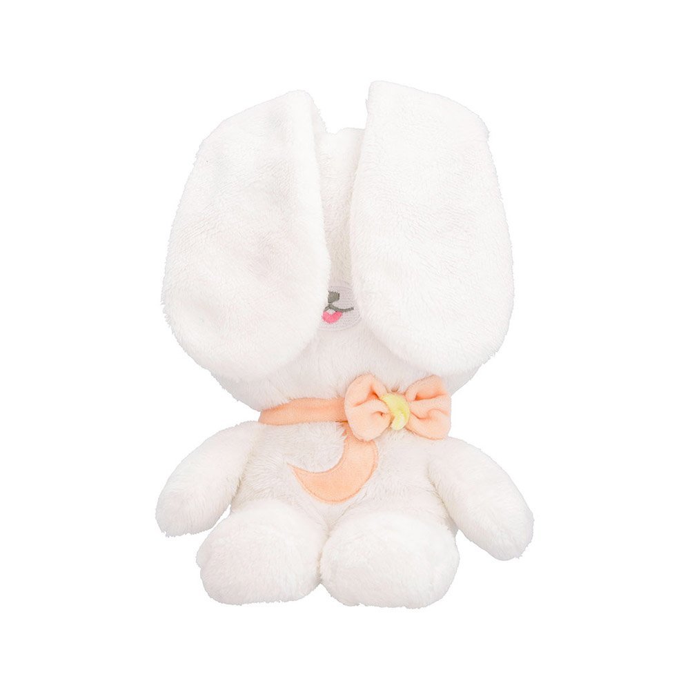 Zabawka jest bardzo miękka i przyjemna w dotyku. Króliczek zamyka oczy uszami. Naciśnij księżyc na brzuszku królika, aby uszy się podniosły.