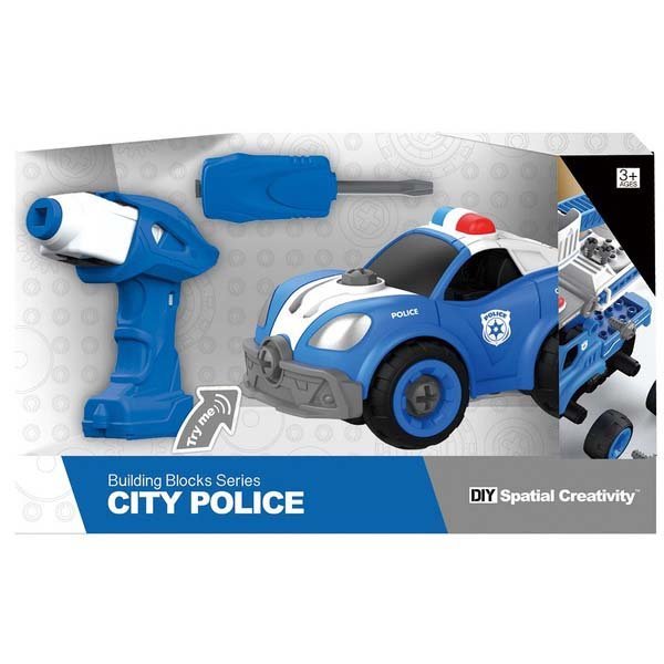 Radiowóz z silnikiem elektrycznym DIY Spatial Creativity LM8021-DZ-1 konstruktor. Radiowóz z wyjmowanym silnikiem elektrycznym. Składa się z 32 części, silnika elektrycznego i panelu sterowania. Zestaw zawiera śrubokręt krzyżakowy i płaski do montażu i demontażu radiowozu. Jeździ tam i z powrotem, wydaje dźwięki alarmu po naciśnięciu przycisku na zderzaku.