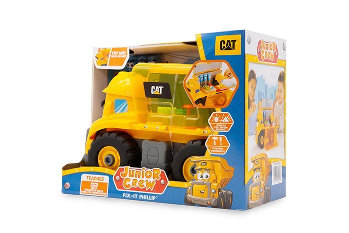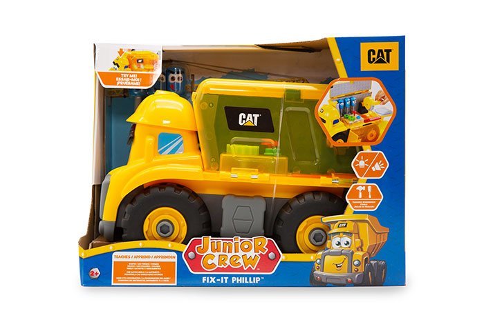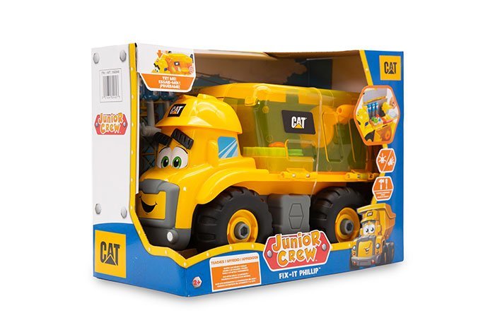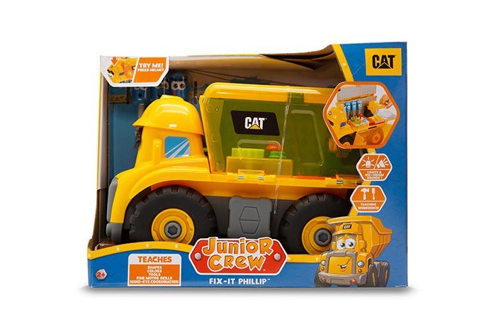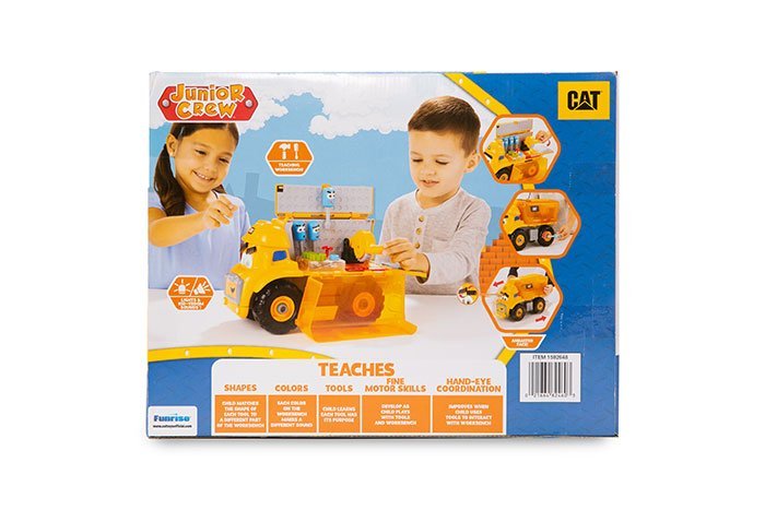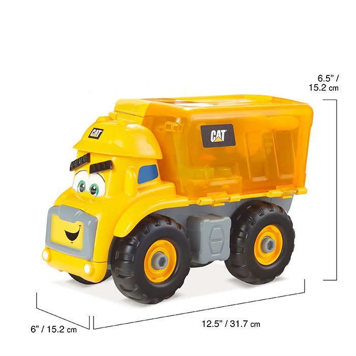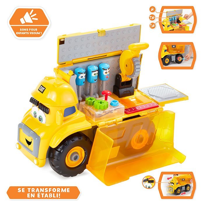 Zabawkowa ciężarówka CAT Fun Workshop 32 cm Funrise 82460 ma zabawny design i kształt, który jest wygodny dla dziecięcych rączek. Wykonana z wysokiej jakości plastiku i wyposażona w 14 efektów dźwiękowych. Po naciśnięciu, wyraz twarzy samochodu zmienia się. Ciężarówka jest bezpieczna, bawi i rozwija dziecko.