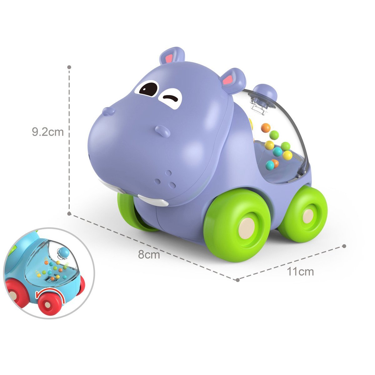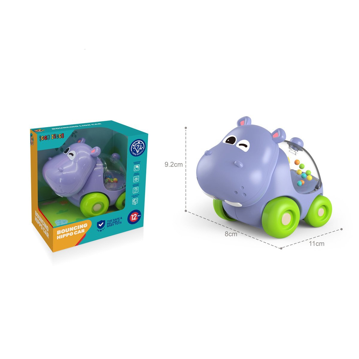 Samochodzik hipopotam Iggy Ziggy to grzechotka zaprojektowana, aby stymulować rozwój małej motoryki u dzieci. Zabawka posiada koraliki, które wydają dźwięk, przyciągając uwagę dziecka i stymulując jego słuch. Samochodzik uruchamia się poprzez pchanie, zachęcając dziecko do ruchu. Iggy Ziggy to marka edukacyjnych zabawek dla maluchów. W ofercie znajdują się jasne i bezpieczne zabawki, które pomagają dzieciom poznawać świat w zabawny sposób. Produkty marki mają na celu rozwijanie małej motoryki, logiki, koordynacji i percepcji sensorycznej. Wszystkie zabawki Iggy Ziggy są wykonane z wysokiej jakości i bezpiecznych materiałów. Jaskrawy design i interaktywne elementy sprawiają, że każda zabawka jest dla dziecka wyjątkowo ekscytująca.