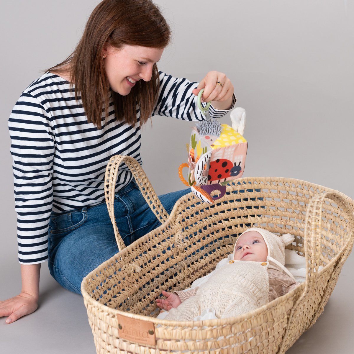 Edukacyjna kostka zabawkowa Jeż i Burak z kolekcji „Przedszkole w mieście” Kolekcja „Miasto” Taf Toys 13095. Edukacyjna kostka JEŻ I BIETROF to miękka i zabawna kostka, która zapewni dziecku rozrywkę dzięki dużej liczbie elementów, a także pomoże mu rozwijać wyobraźnię, percepcję sensoryczną i motorykę małą. Z taką zabawką dziecko będzie się dobrze bawić i ciekawie poznawać świat! Cechy zabawki Taf Toys: Zabawka to kostka, na której każdej stronie znajduje się wizerunek uroczego bohatera – królika, biedronki i jeża, a także tulipana i marchewki. Każda strona kostki jest unikalna, zawiera wesoły, jasny obrazek, jest wykonana z tkanin o różnej fakturze i posiada elementy edukacyjne. – Króliczek ma szeleszczące uszy, które pomogą dziecku nauczyć się różnych faktur. – Po drugiej stronie kostki w kieszonce ukryta jest miękka marchewka, którą można stamtąd wyjąć. – Ktoś schował się pod liściem tulipana, szybko się zorientuj! – Na wierzchu kostki jeż ma miękkie i przyjemne w dotyku „kolce”. – Na dole kostki znajduje się bezpieczne lusterko, w którym dziecko może się przejrzeć. Dodatkowo – plastikowe kółka z figurkami i gryzak w kształcie buraka. Zabawki Taf Toys zostały zaprojektowane tak, aby zapewnić rozwój emocjonalny, umysłowy i fizyczny dziecka w ciągu pierwszych dwóch lat jego życia. Rodzina może po prostu cieszyć się zabawkami Taf Toys i przygotować się na wiele chwil miłości, radości i szczęścia z dzieckiem. Każda zabawka jest przemyślana w najdrobniejszych szczegółach, aby przyczynić się do rozwoju dziecka. Zabawkę można łatwo przymocować do wózka lub fotelika samochodowego za pomocą plastikowego kółka. Zabawa kostką pozytywnie wpływa na: wyobraźnię; koncentrację uwagi; motorykę małą; zmysły. Bycie rodzicem jest łatwiejsze z Taf Toys! Polecane od urodzenia.