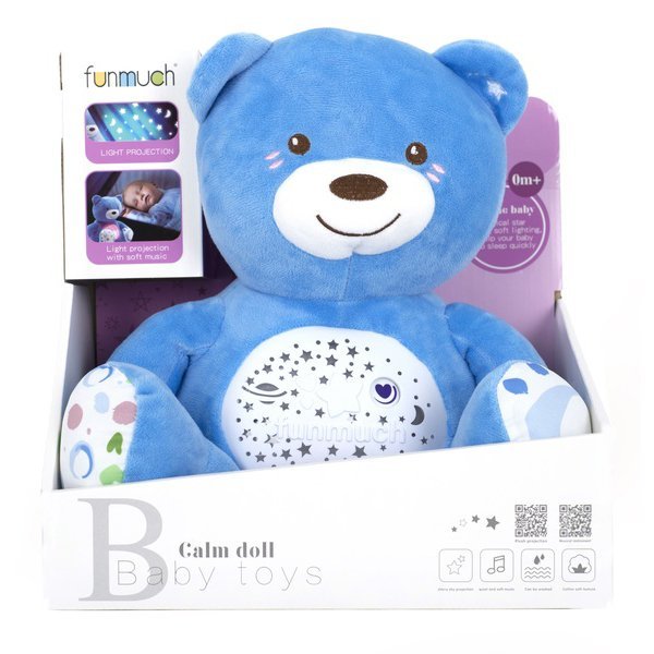Zabawka nocna Funmuch Myszka z projektorem FM666-1. Miękka, muzyczna zabawka z projektorem będzie wspaniałym prezentem dla dziecka. Myszka wyposażona jest w efekty świetlne i dźwiękowe, które przeniosą dziecko w świat bajkowych snów. Zabawka działa nieprzerwanie przez 20 minut. Można prać po wyjęciu jednostki muzycznej.