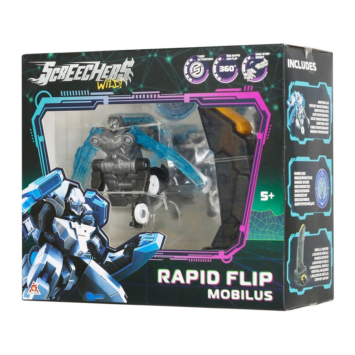Zestaw do zabawy Screechers Wild Mobilus z sezonu 5 to ekscytująca transformacja samochodu w bestię bojową w powietrzu! Samochód wykonuje spektakularne salto o 360°, gdy złapie magnetyczny dysk energii. Jaskrawy design, dynamiczna transformacja i dynamiczna rozgrywka dostarczą Ci wielu emocji. Zbierz kolekcję Screecherów i zorganizuj niezapomniane bitwy dobra ze złem!