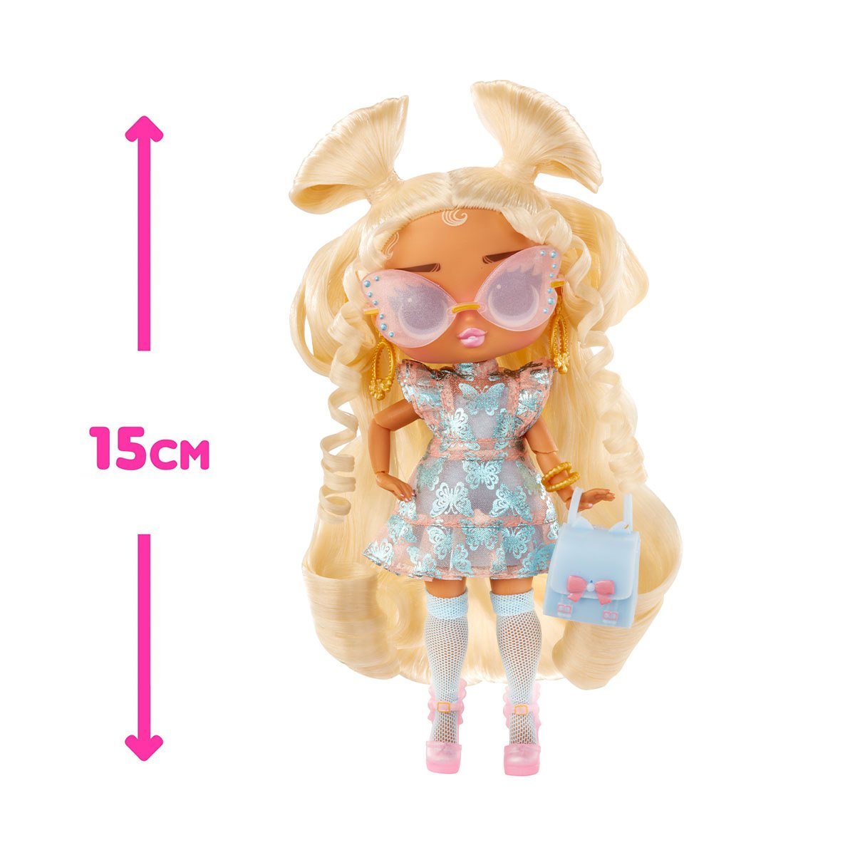 - Duża i jaskrawa lalka o wysokości 15 cm.