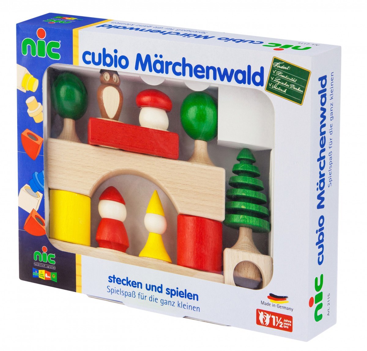 Drewniany zestaw klocków NIC Cubio, 17 elementów, NIC2115. Wszystkie elementy zestawu klocków NIC są polerowane i malowane nietoksycznymi farbami, bezpiecznymi dla dzieci. Grę można uzupełnić innymi zestawami klocków z serii „Cubio”. Produkty marki Nic to wysokiej jakości produkty dla radosnego dzieciństwa.